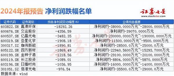 从预告净利润降幅来看,嘉澳环保、交运股份、亿晶光电三家公司排名居前,预计净利润降幅分别达到18292.26%、4356.59%、3482.35%,显示出其面临的严峻挑战。据统计,共有79家公司预计全年净利润降幅将超过50%。